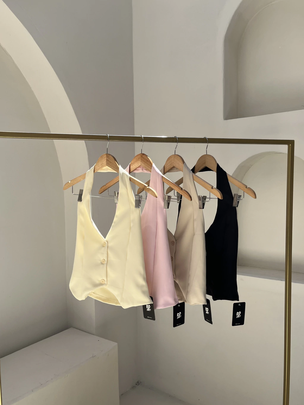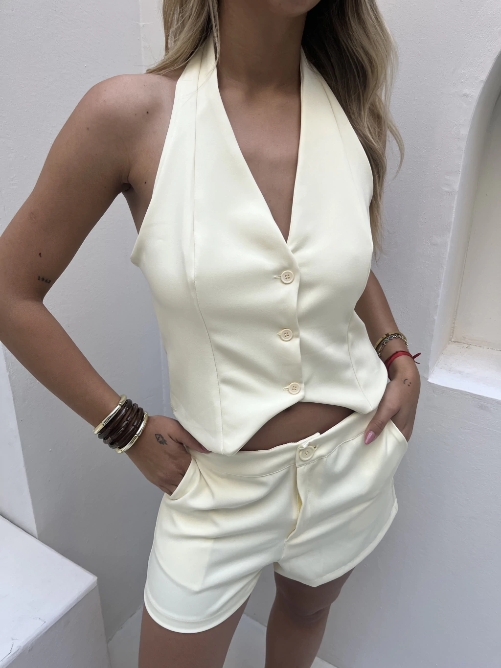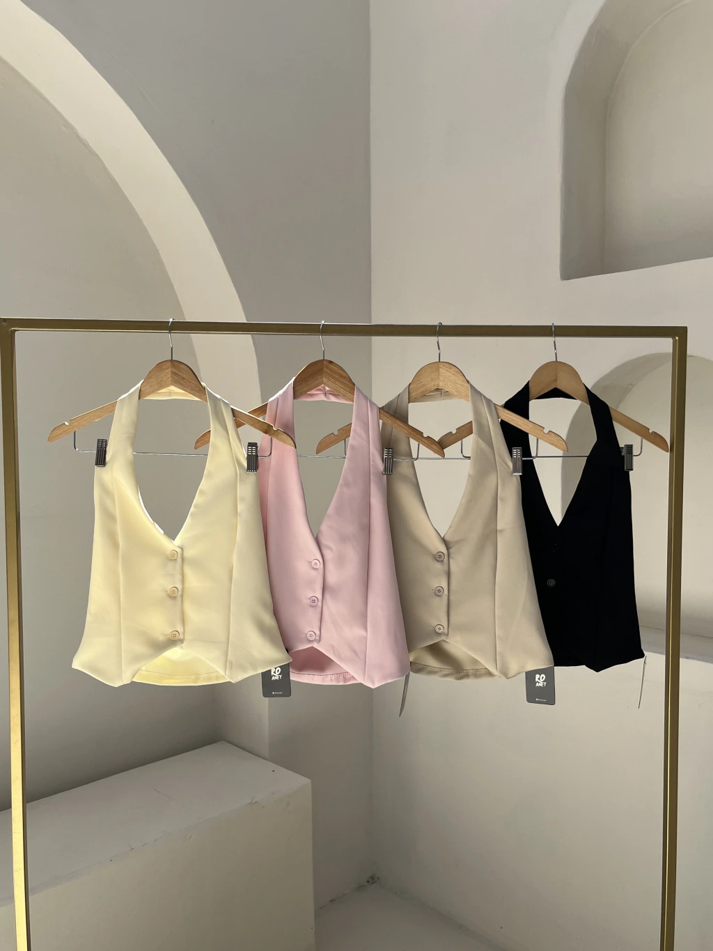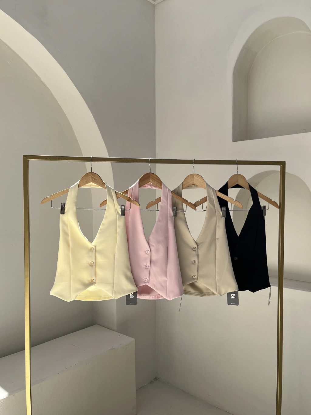 Chaleco sastrero corte Marilyn, confeccionado en materiales de excelente calidad. Disponible en tonos neutros y pasteles, combina elegancia y frescura para realzar cualquier look. Ideal para usar solo o como complemento en outfits sofisticados y modernos.