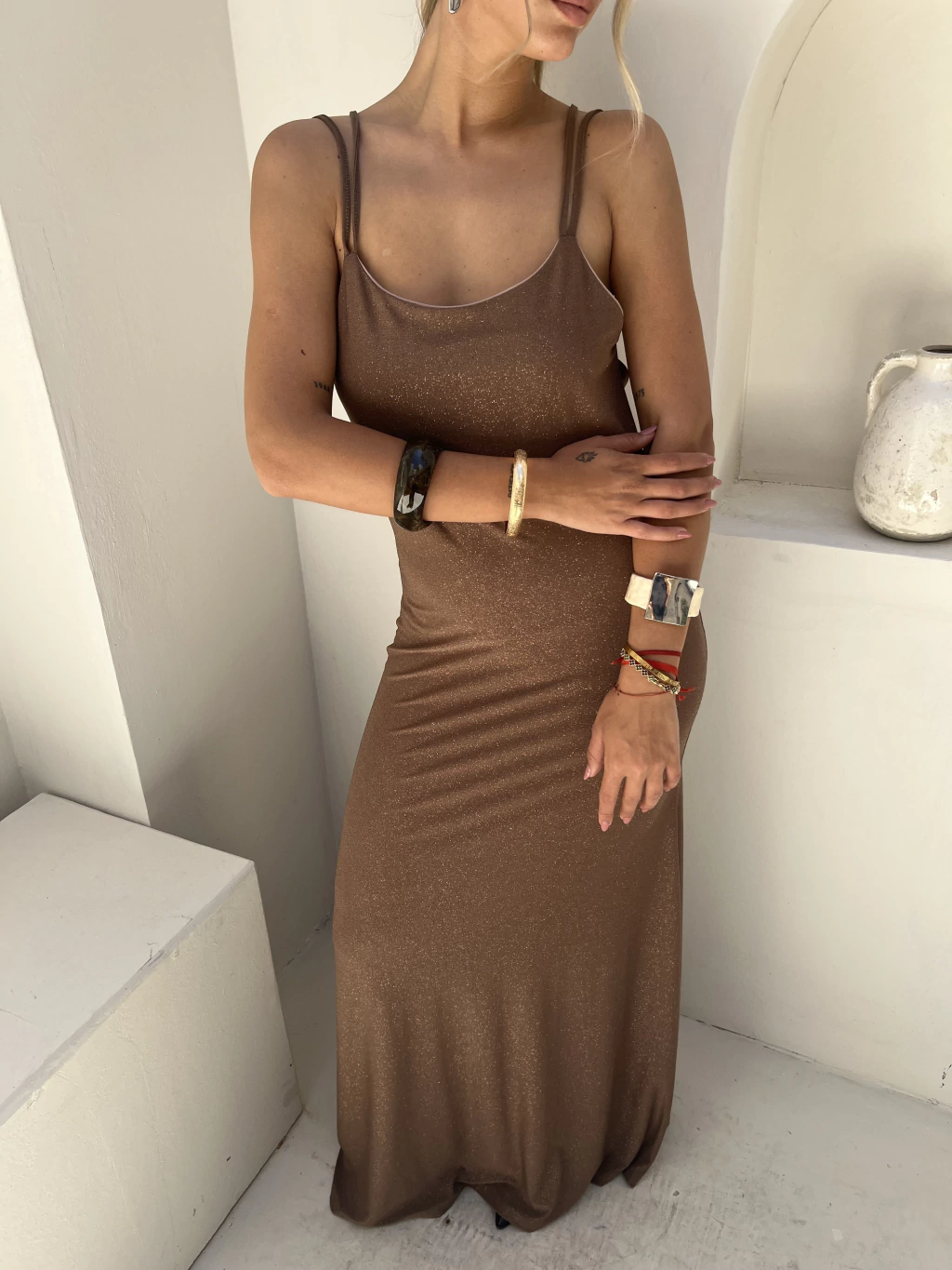 Este vestido largo de glitter es pura elegancia y diversión, ideal para deslumbrar en cualquier ocasión especial. 💃✨