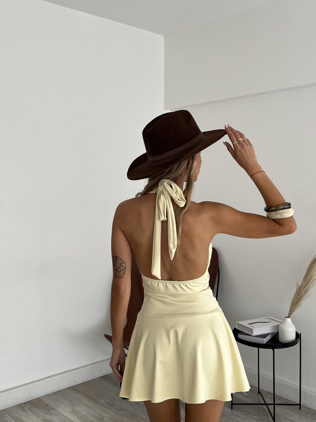 Tener en cuenta que en la espalda tiene elastico y se ata y regula en el cuello.